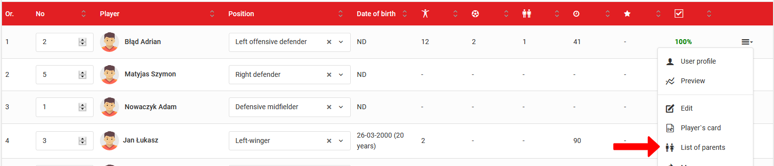 Para agregar un padre manualmente, abra la lista de jugadores, luego elija el jugador al que desea agregar un padre. Cuando haga clic en la lista de padres, aparecerá un formulario para agregar un padre.